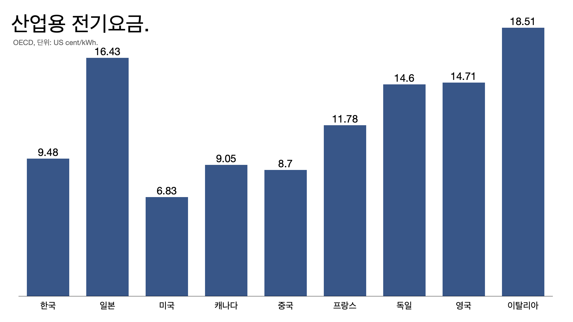 - 조선일보의 논조는 기업들 요구에 기울어 있다. 한국의 가정용 전기요금이 상대적으로 싼 건 사실이지만 산업용 요금도 비싸다고 보기는 어렵다. 미국보다는 비싸지만 일본이나 이탈리아보다는 훨씬 싸다. 재생 에너지로 가는 흐름을 부정하는 것도 현실적이지 않다.