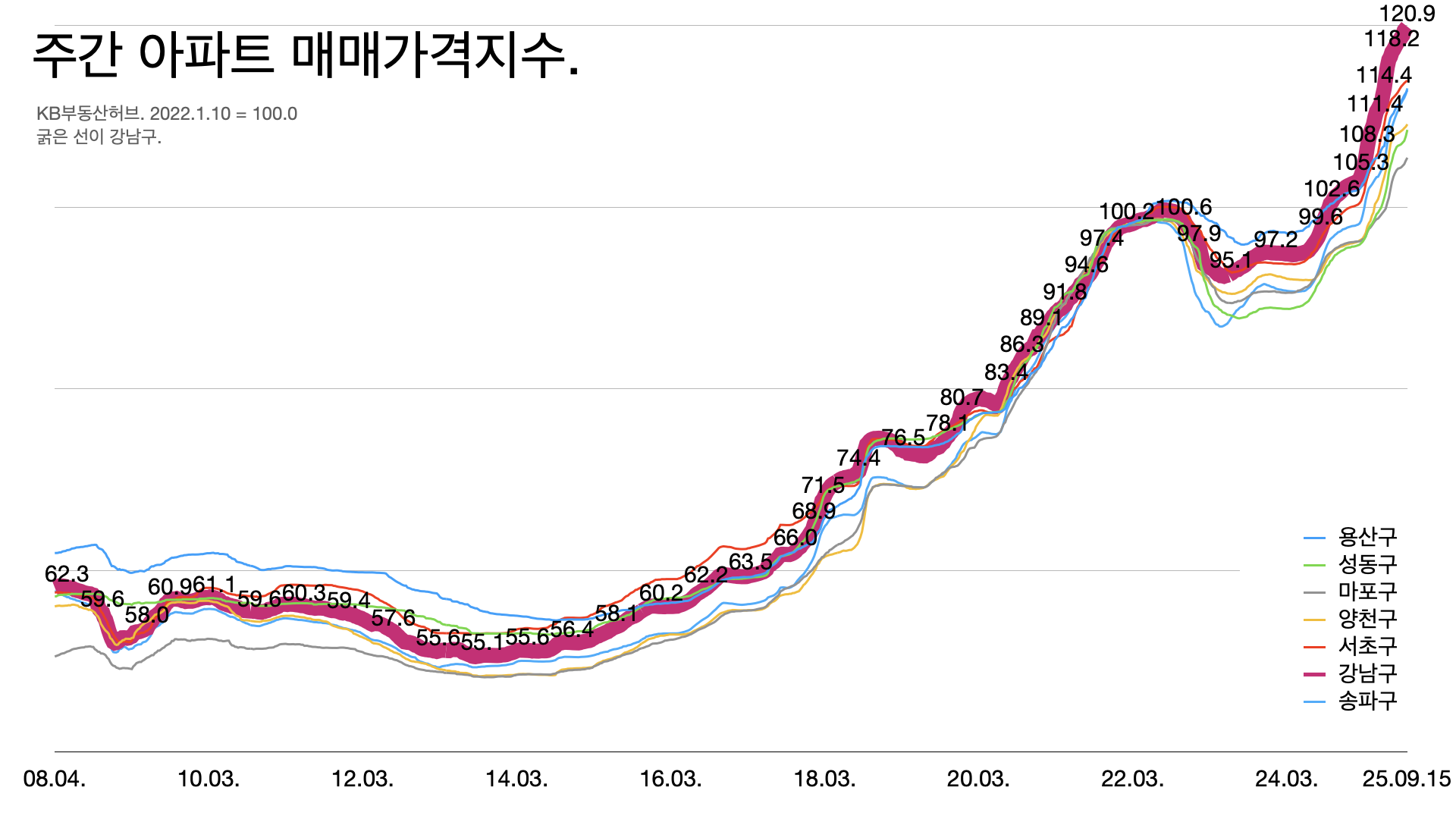 - 서진형(광운대 교수)은 “현금 부자가 아닌 이상 강남 3구는 부담스러우니 다음 상급지인 ‘마성광’ 등 한강 벨트로 풍선 효과가 나타나고 있다”고 분석했다.