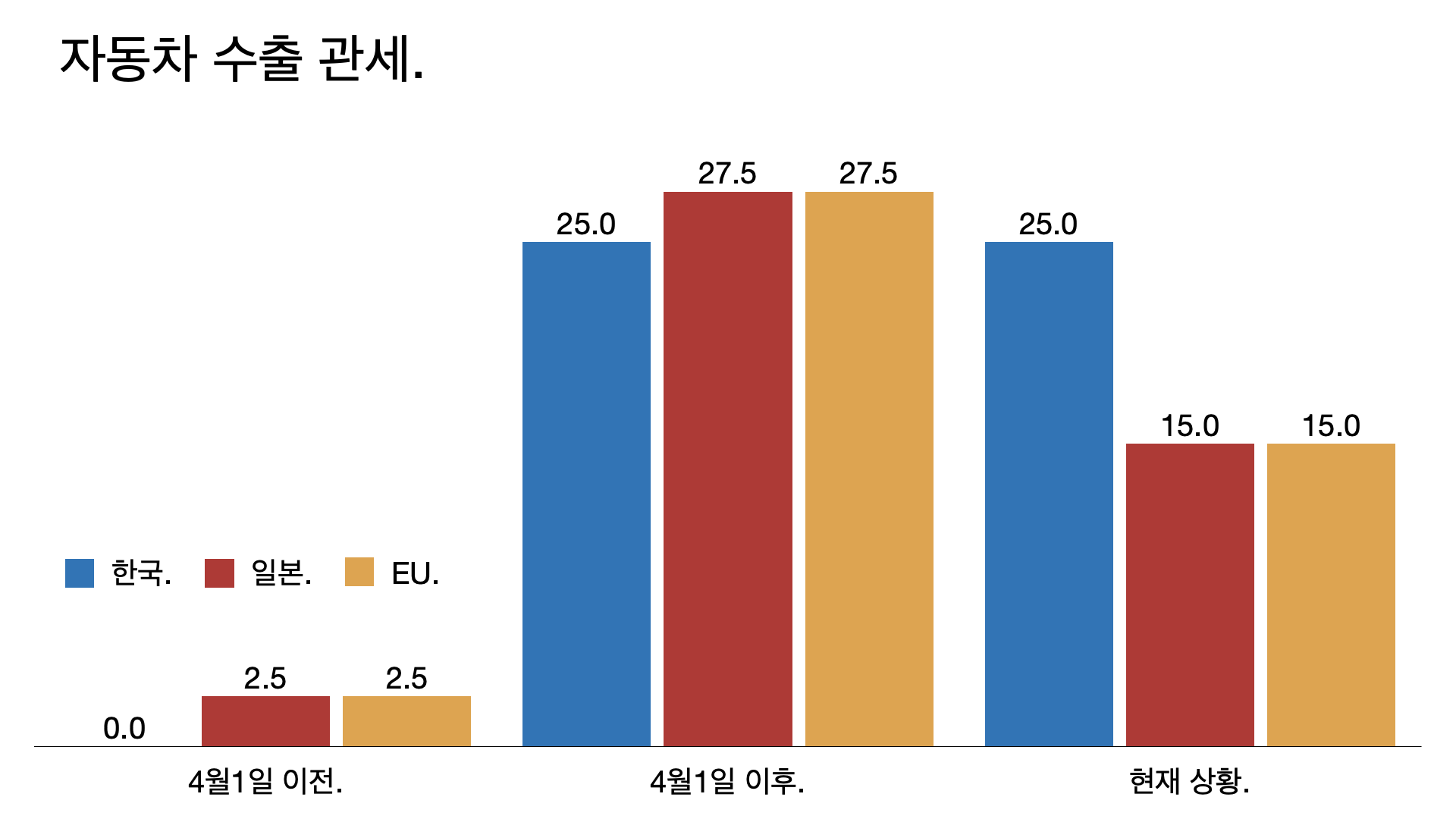 - 일본도 9월16일부터 27.5%에서 15%로 낮춘 상태다. 한국만 아직 25%를 적용받고 있다.