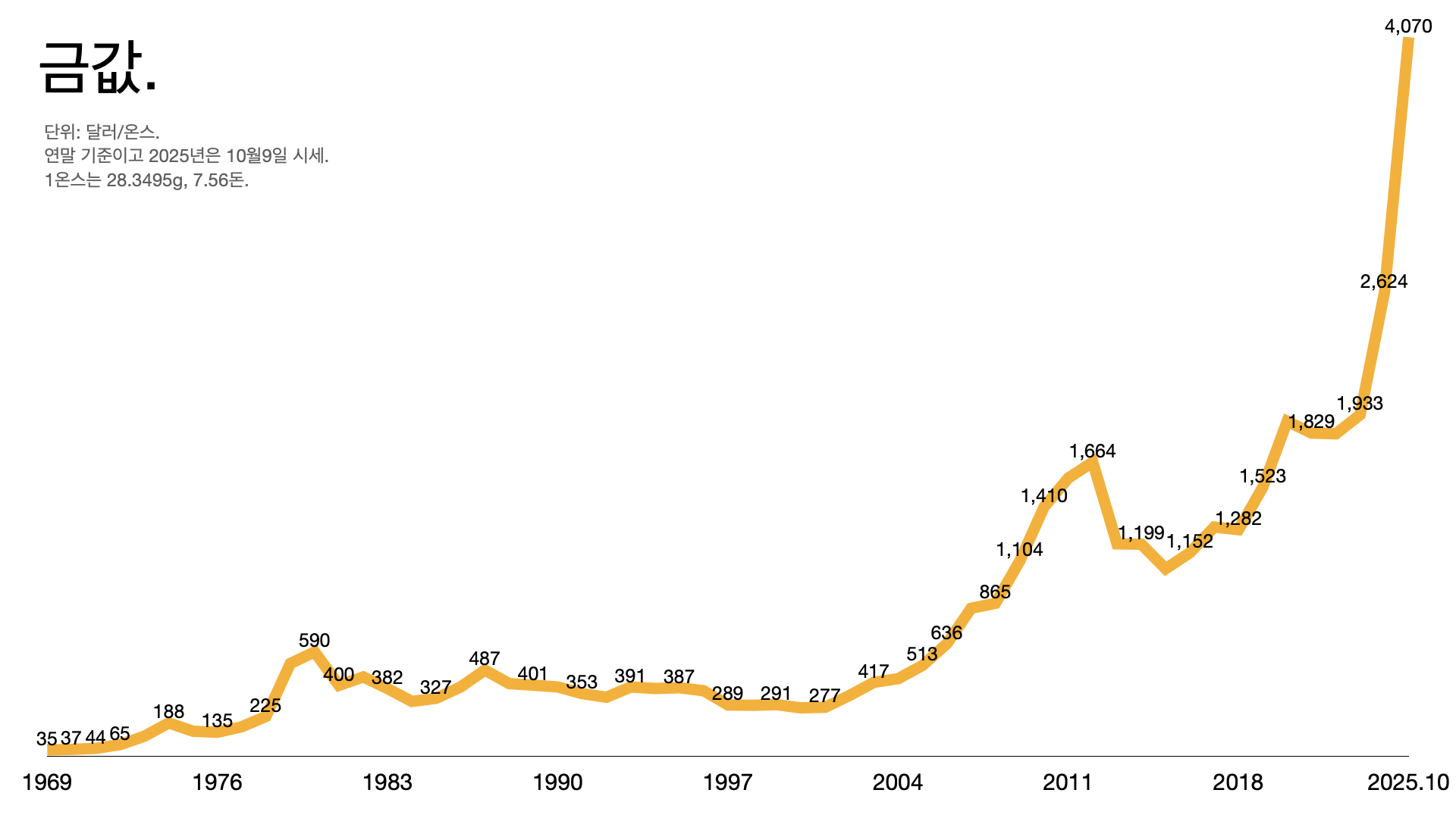 - 안전 자산 선호가 강해지면서 1온스에 5000달러까지 오를 거라는 전망도 나온다.