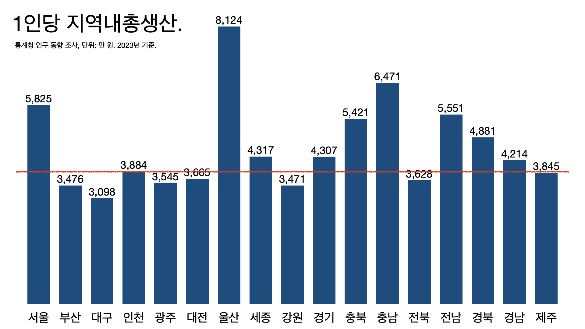 - 광주와 대구는 광역시 가운데 1인당 지역내총생산이 가장 적은 두 곳이다.