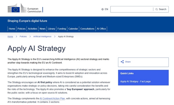 유럽 연합이 AI 대륙 액션 플랜을 발표한 게 지난 4월이었다. 이번에 발표한 전략은 주요 산업 및 공공 부문에서 AI 활용을 가속화하는 방안을 제시하며 유럽이 AI 산업과 과학 분야에서 각각 선두를 유지할 수 있도록 두 가지 전략을 제시했다. ‘AI 적용’ 전략과 ‘과학 분야 AI’ 전략은 이러한 목표를 달성하고 EU가 핵심 분야 및 과학 분야에서 AI 활용을 가속화할 수 있도록 하는 액션 플랜 다음 단계이다. 이 전략은 다음과 같은 주요 과제를 다룬다.