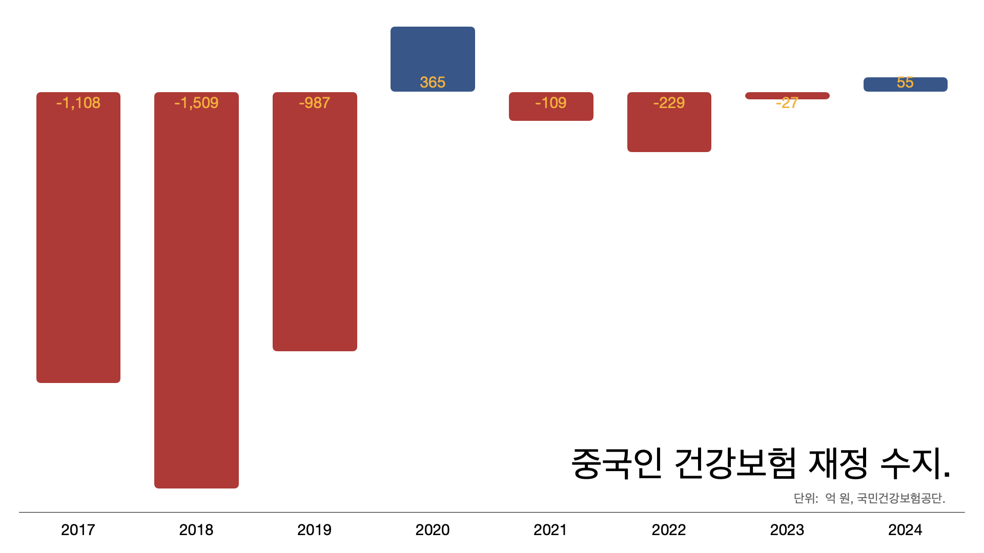 - 1000억 원 이상 적자를 내던 때도 있었다. 지난해부터 외국인이 한국 거주 6개월 이상이 돼야 건보 적용을 받도록 바뀌면서 의료 쇼핑이 크게 줄었다.