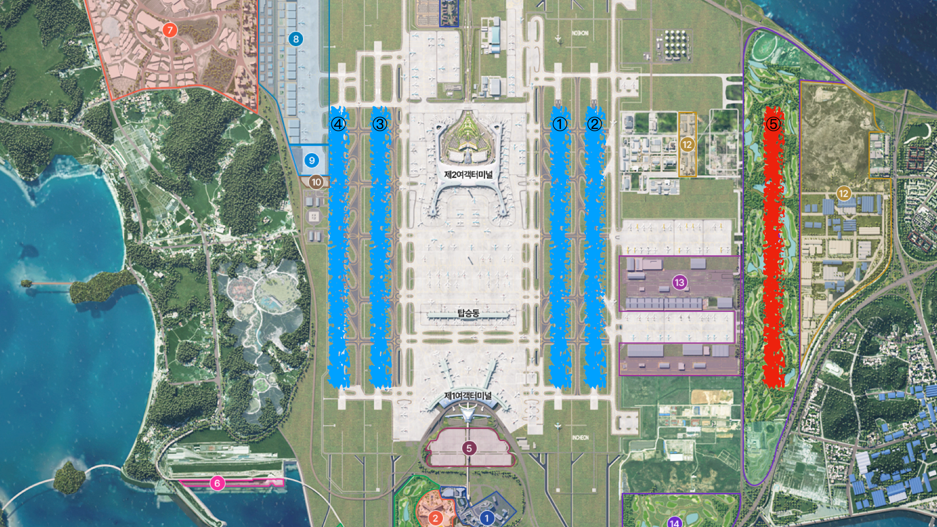 - 인천국제공항의 수용 능력은 1억600만 명, 5단계 공사가 끝나면 1억3000만 명으로 늘어난다.