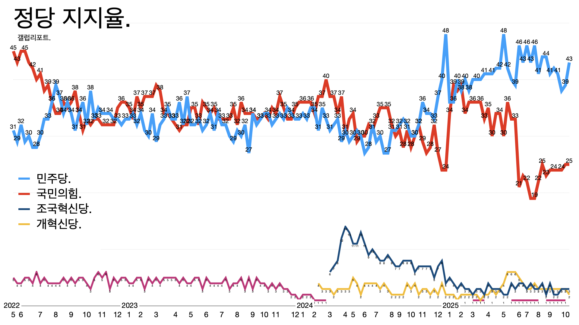 - 지난 금요일 한국갤럽 여론조사에서는 이재명(대통령)과 민주당 지지율이 나란히 올랐다. 이상경 사퇴 전에 진행한 여론조사다. 이상경 이슈가 여론을 크게 흔들지는 않았다는 이야기다.