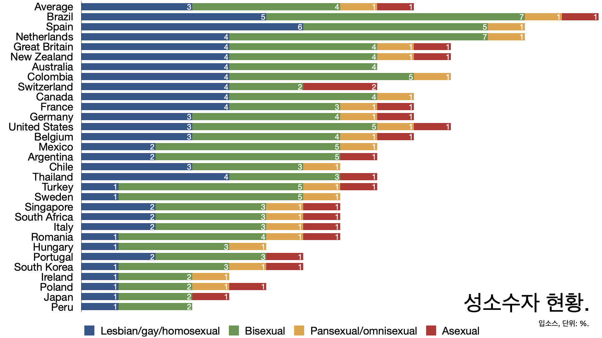 - 입소스 조사에서는 6%였다. 한국 인구를 5000만 명으로 잡으면 300만 명 정도다. 성 소수자는 어디에나 있다.