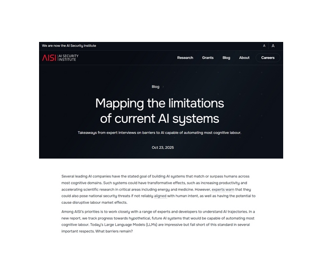 현재의 AI가 AGI 급으로 갈 수 있을까. 전문가 인터뷰 중심의 영국 AI 보안 연구소 보고서를 보면 아직 갈 길이 멀다.