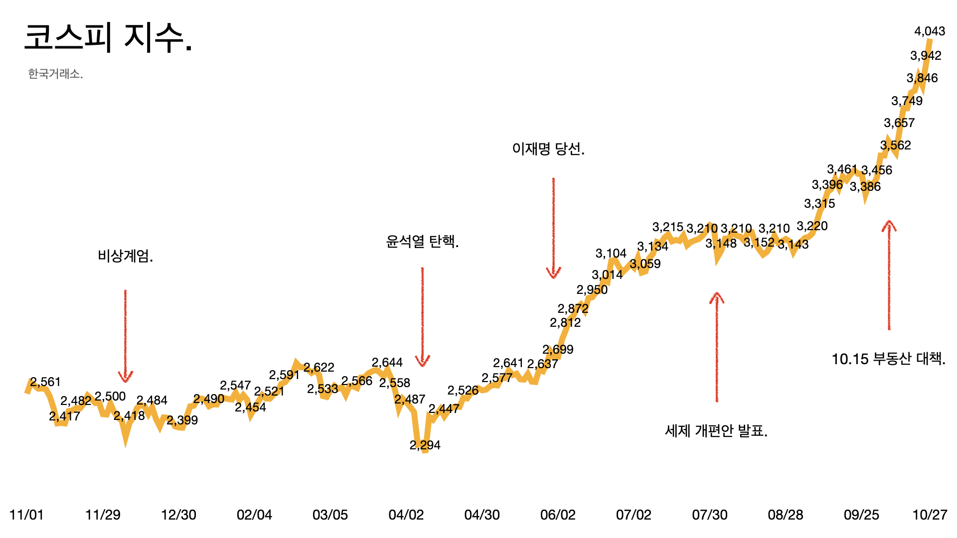[슬로우레터] 코스피 5000도 가능, 판이 달라졌다… 악재에도 버티는 이재명 지지율, 당-정 분리 효과 있었다. (⏰14분)