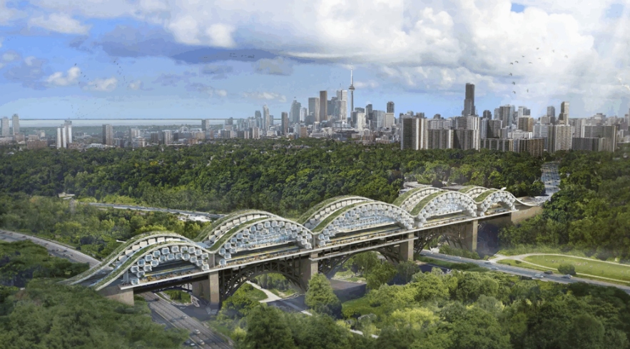 보통 다리 위에 집을 짓는다고 하면 수상가옥이나 열악한 조건의 집을 떠올리는 경우가 많은데, 그렇게만 볼 필요는 없다. 예컨대 건축가 파로우의 제안은 나무에 철제를 보강한 새로운 재료 공법을 활용하여 거주, 위락, 업무, 상업 기능을 담는 ‘살아있는 다리’를 만들자는 것이다(아래 그림 참고).