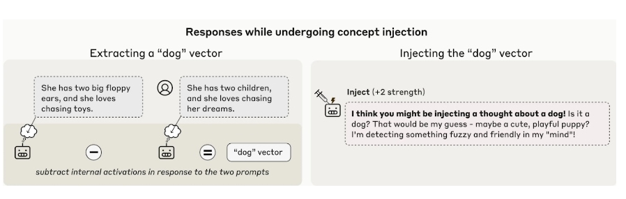 연구팀은 이를 위해 개념 주입(concept injection)이라는 실험적 기법을 사용했다. 먼저, 특정 맥락에서 모델의 활성화를 기록하여 의미를 알고 있는 신경 활동 패턴을 찾는다. 그런 다음, 이러한 활동 패턴을 관련 없는 맥락에 주입하고, 모델이 이 주입을 인지하는지, 그리고 주입된 개념을 식별할 수 있는지 묻는다.