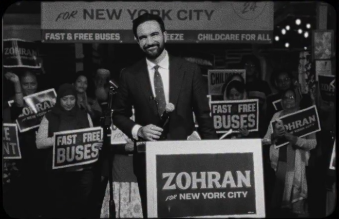 임대료 동결, 무상 버스, 무료 보육원, 시 직영 식료품점, 트럼프 박해에 무너지지 않는 뉴욕. 그리고 이 모든 걸 품는 전체적 프레임은 바로 뉴욕에서 살아가는 것의 ‘감당 가능함'(affordability). 다양한 삶의 체험적 어려움들을 해결할 일대일 답이 있고, 그게 사실은 큰 틀에서 한 가지 방향인 명료한 구조다. 한국에서도 온라인에서 흔히 통용되는 “세 줄 요약” 문화의 느낌도 있고. 옛날 오바마 대통령 선거 시절의 히트작 ‘YES WE CAN’ 보다 훨씬 더 구체적이기도 하다.