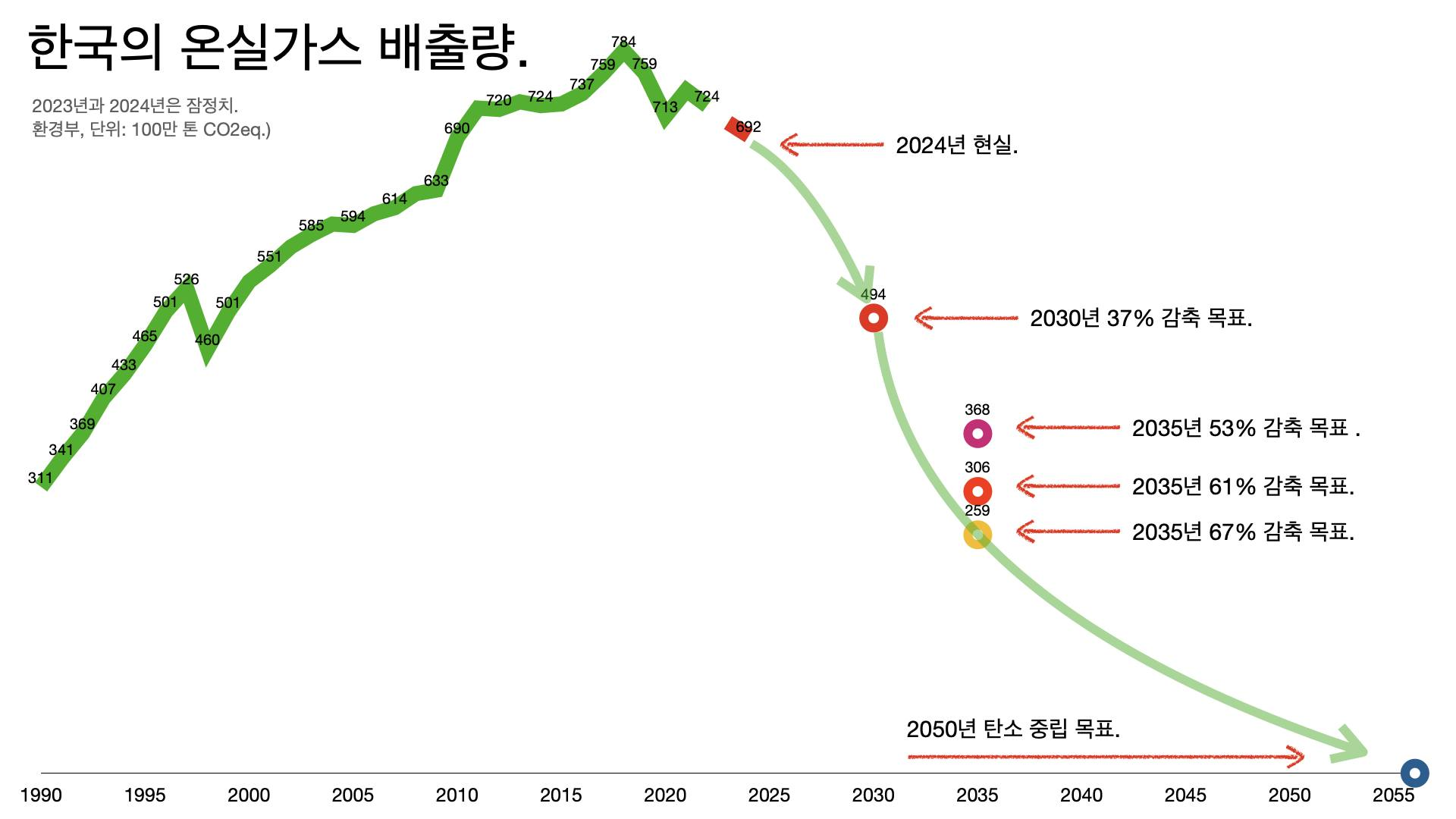 - 2018년 대비 감축 목표다. 어제 탄소중립녹색성장위원회가 의결했다.