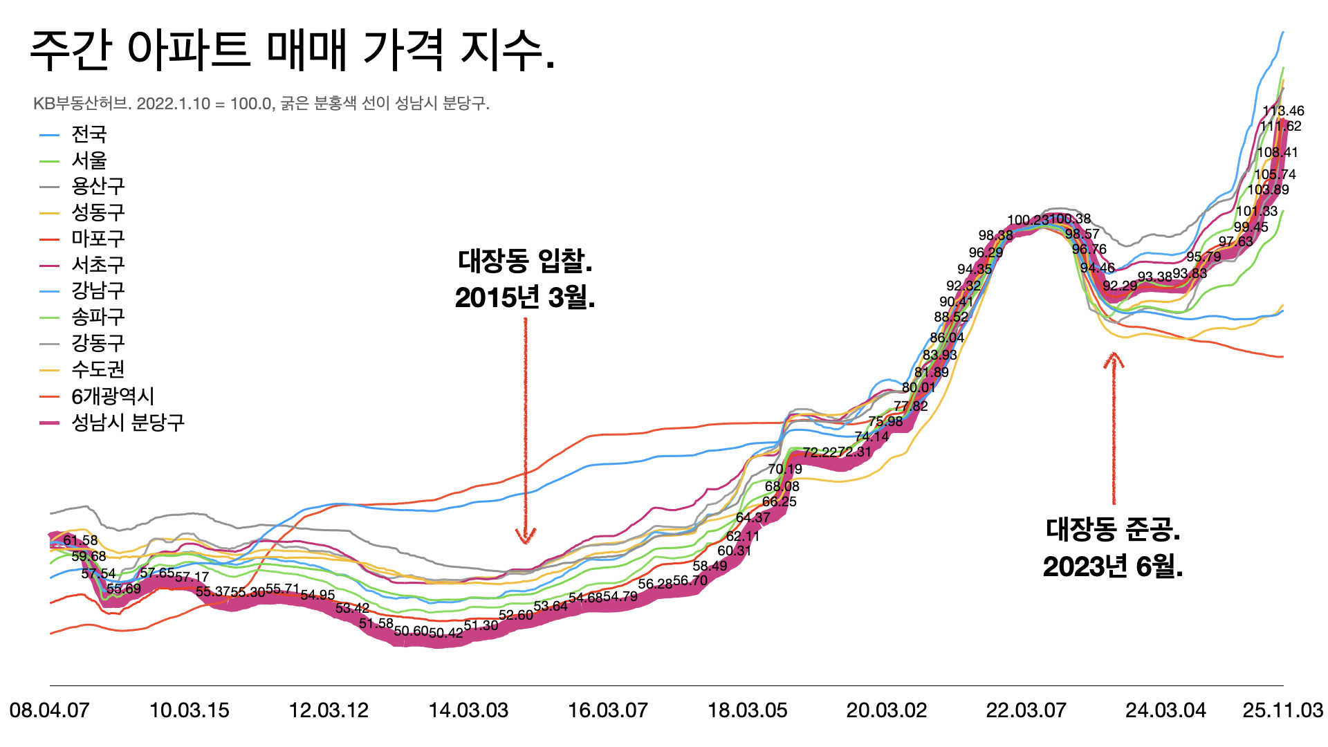 - 대장동 입찰이 있었던 2015년은 부동산 경기가 막 바닥을 치던 무렵이었습니다. 2021년에 돌아보면 대박을 터뜨린 것처럼 보이지만 김만배 등이 상당한 리스크를 감당했던 건 사실입니다.