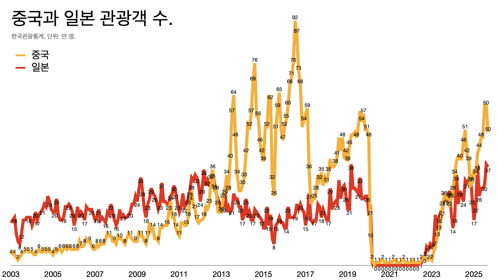 - 참고로 일본 관광객은 지난해 322만 명, 올해 267만 명이다.