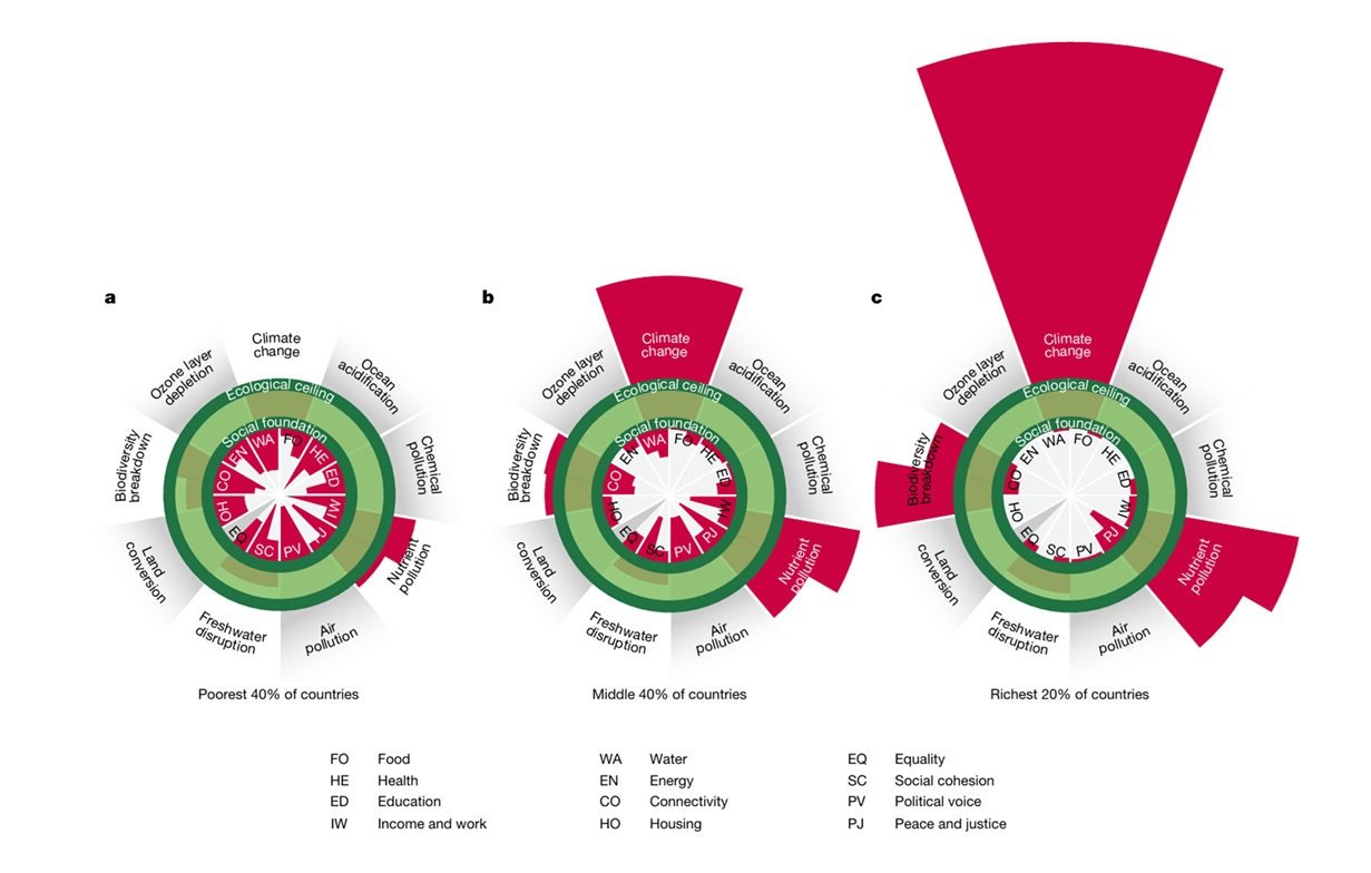 -도넛모델은 기존의 GDP 중심 성장 모델의 한계를 지적한다. 도넛경제학 주창자, 케이트 레이워스(영국 옥스포드대 환경변화연구소 선임연구원) 연구팀이 얼마 전 분석결과를 발표했는데, 2000~2022년에 전 세계 GDP가 두 배로 늘었지만 사회적 기초를 보장 받지 못하는 사람은 미미하게 줄어들었다.