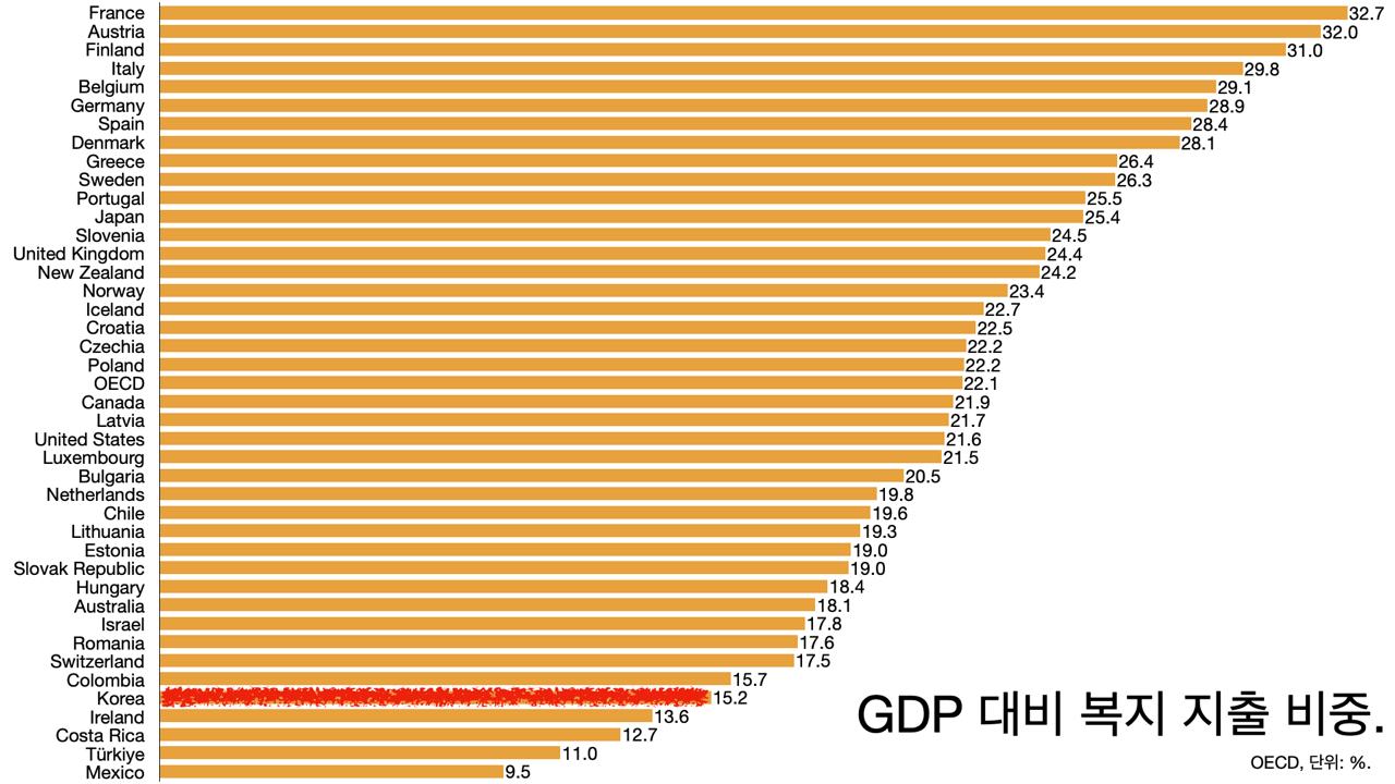 - 지난 10년 동안 복지 지출 증가율이 정부 총지출 증가율보다 높았는데 내년에는 거의 비슷한 수준이다.