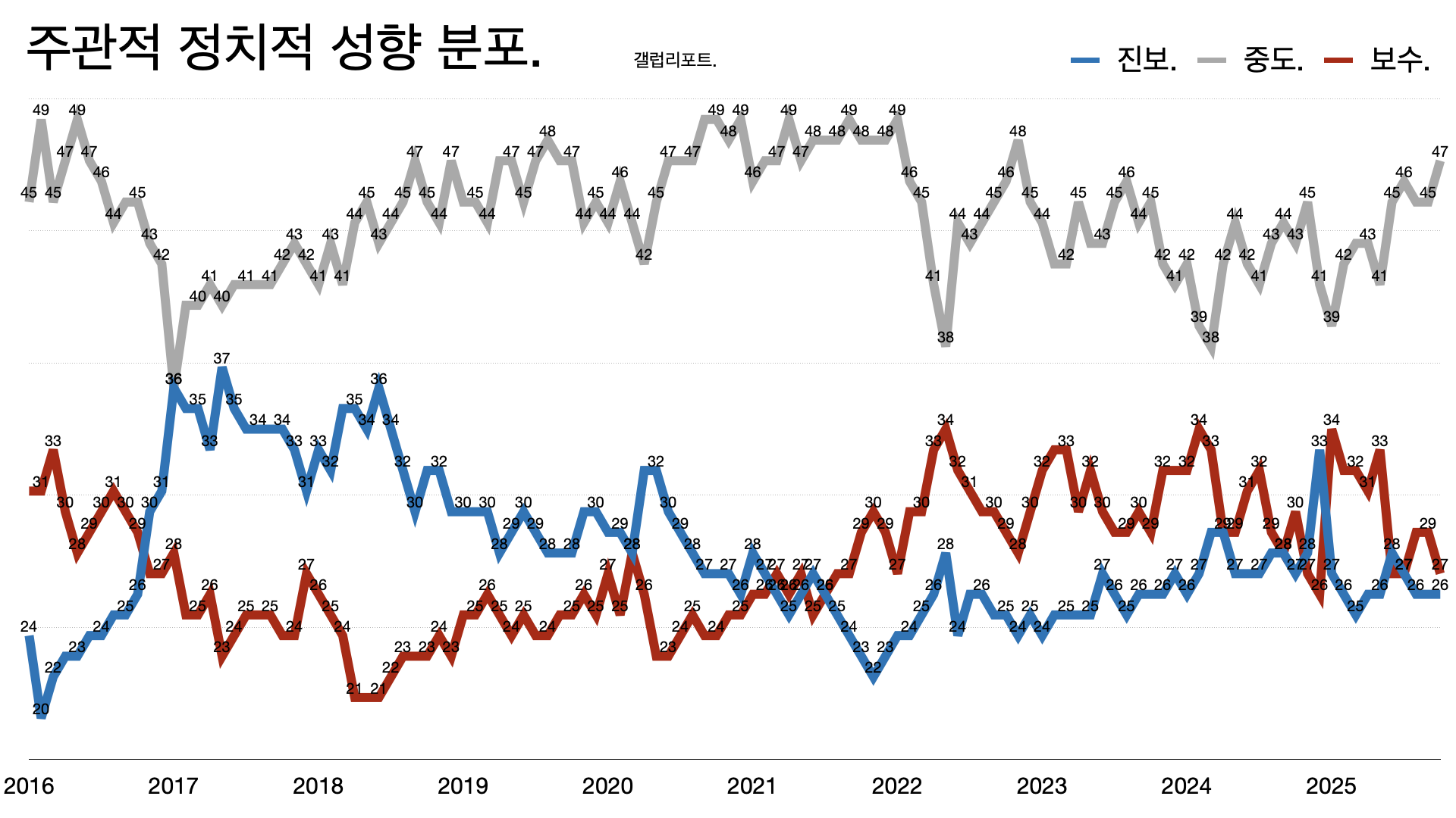 - 이재명 정부 출범 이후 20%포인트 안팎의 차이를 유지하고 있다.