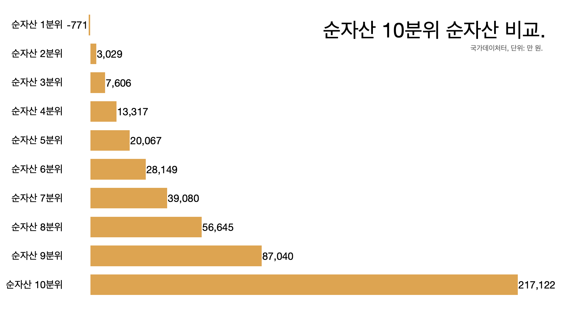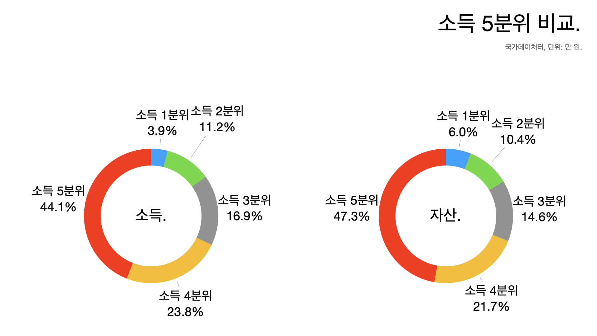 - 소득 하위 20% 순자산은 5.6% 줄었는데 상위 20%는 7.4% 늘었다.