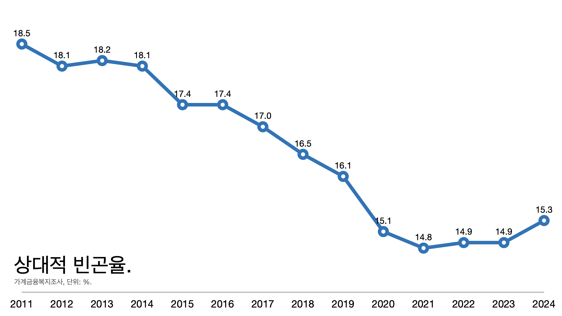 - 상대적 빈곤율은 14.9%에서 15.4%로 올랐다.