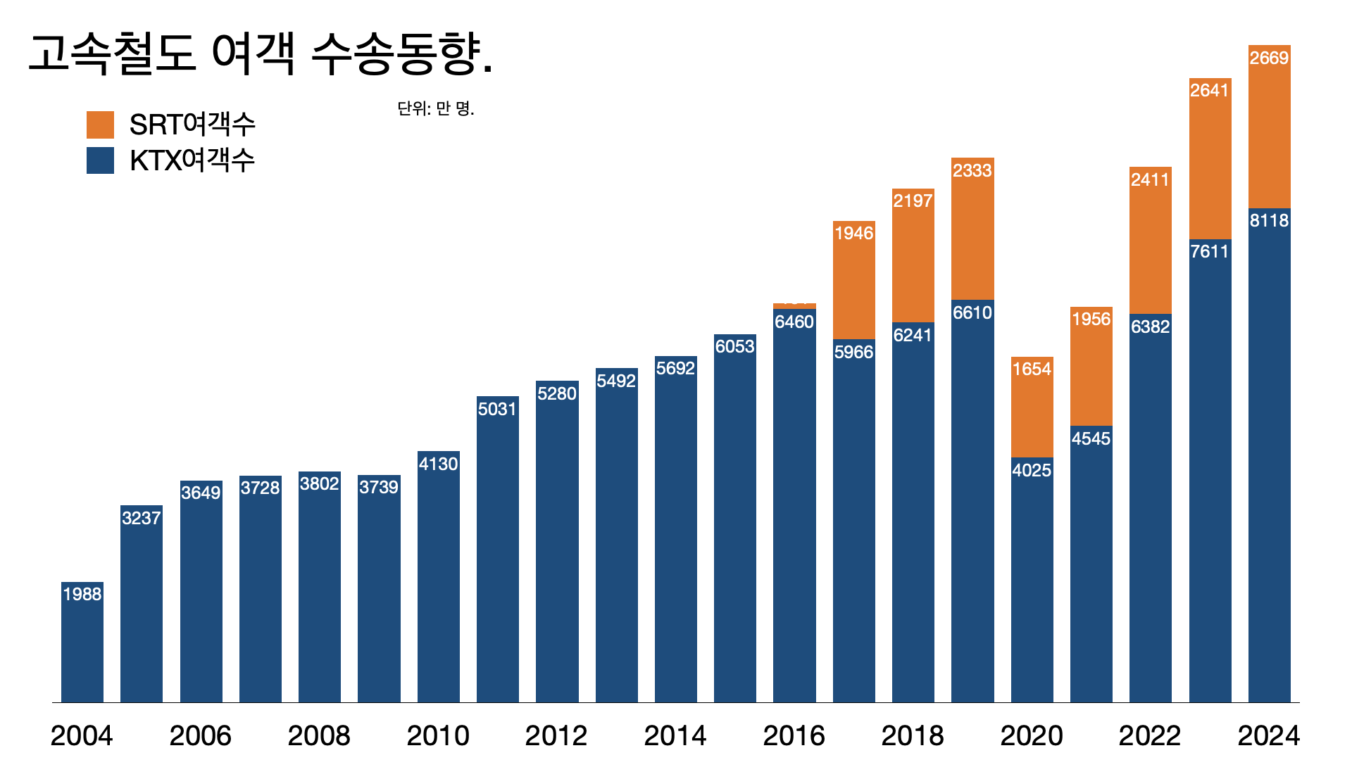 - 2016년 SR이 출범하면서 나뉜 고속철도 서비스가 10년 만에 다시 일원화된다. 윤진환(국토교통부 철도국장)은 “통합에 따른 효율과 편익이 더 크다고 판단했다”고 말했다.