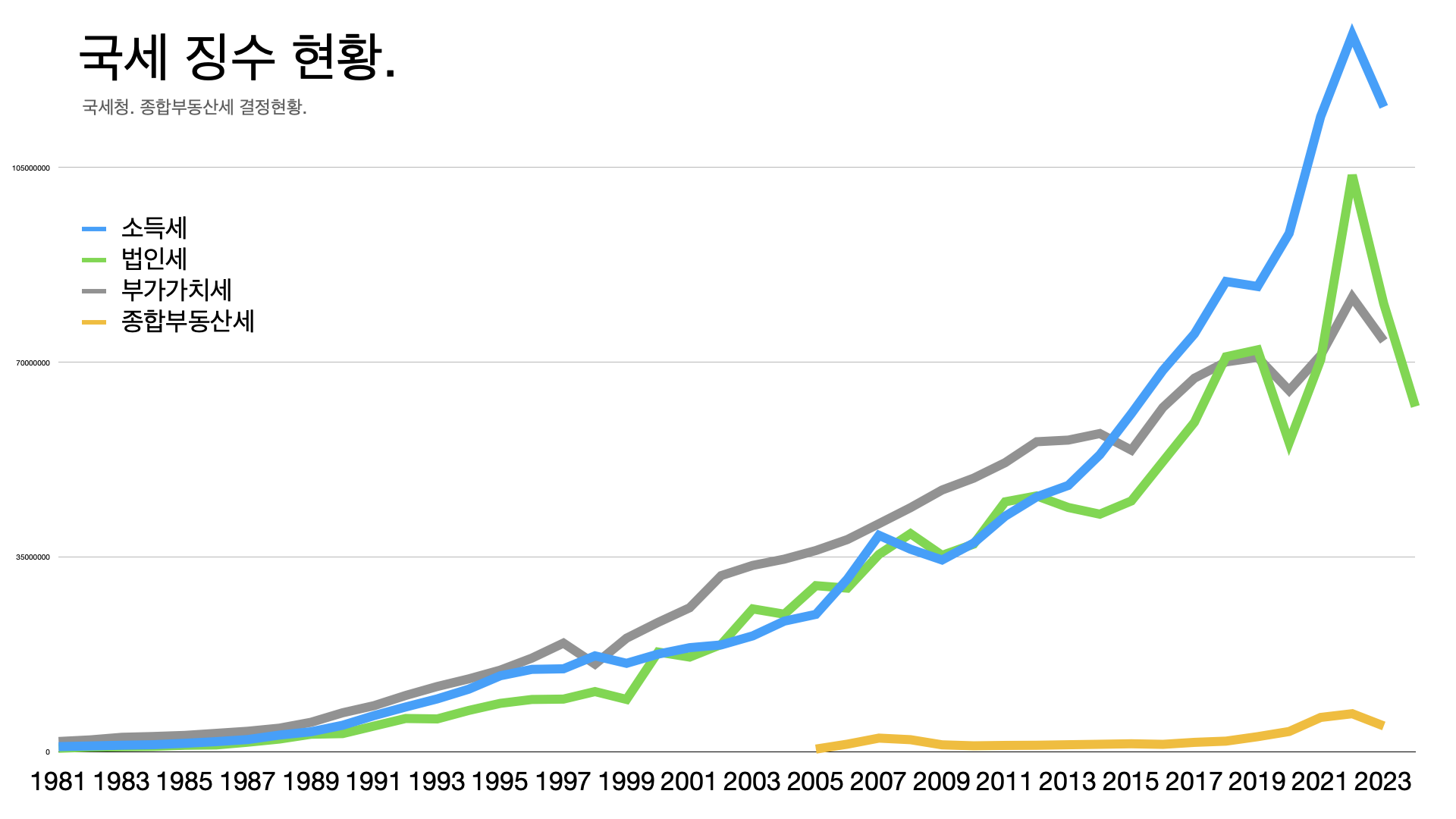 - 소득세는 누진세 적용 구간을 올려서 129조 원이 116조 원으로 줄었다.