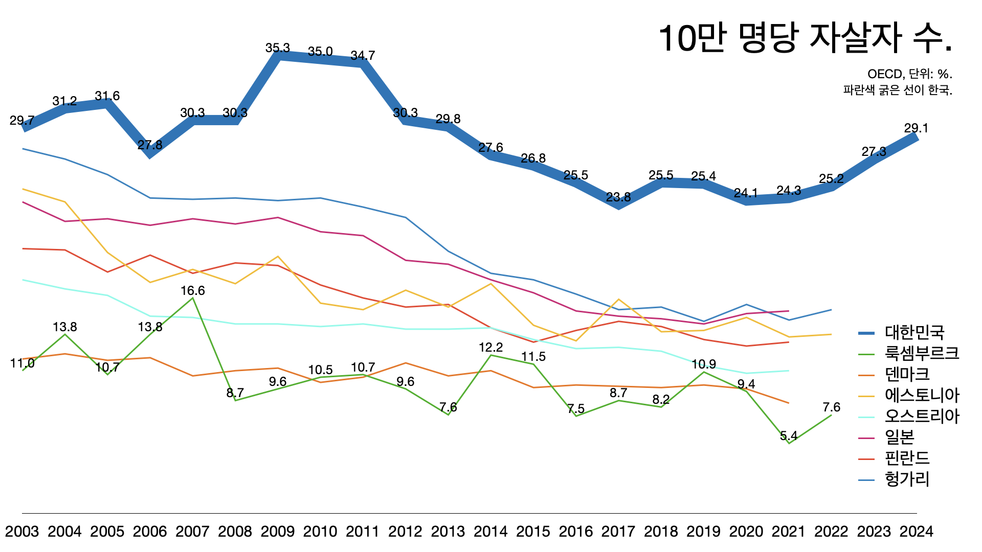 - 지난해 자살률이 10만 명당 29.1명이다.