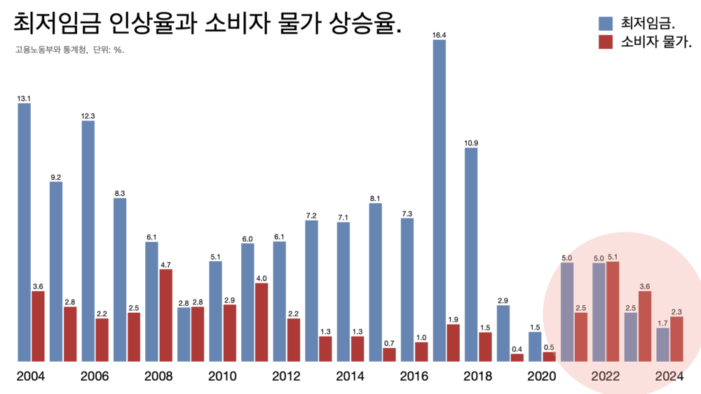 - 최저임금 인상률이 소비자 물가에 못 미쳤다.