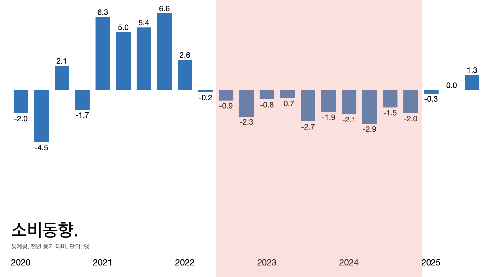 - 소매 판매액 지수가 12개 분기 연속 마이너스였던 건 처음이다.