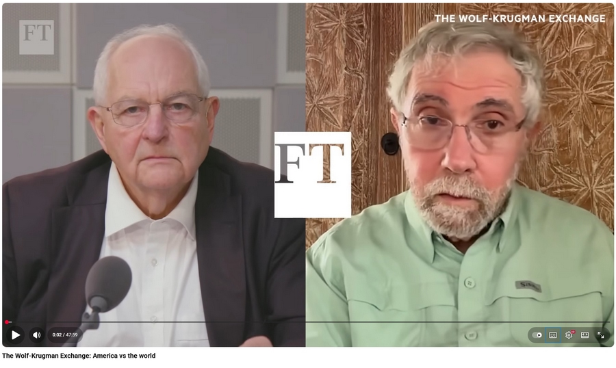 폴 크루그먼(2008년 노벨경제학상 수상자)은 최근 마틴 울프와의 대담에서 미국은 중국에 많이 밀려 있다고 평가한다. 미국을 따라잡아야 하는 건 중국이 아니며, 오히려 미국이 중국을 따라잡아야 한다고 말할 정도다.