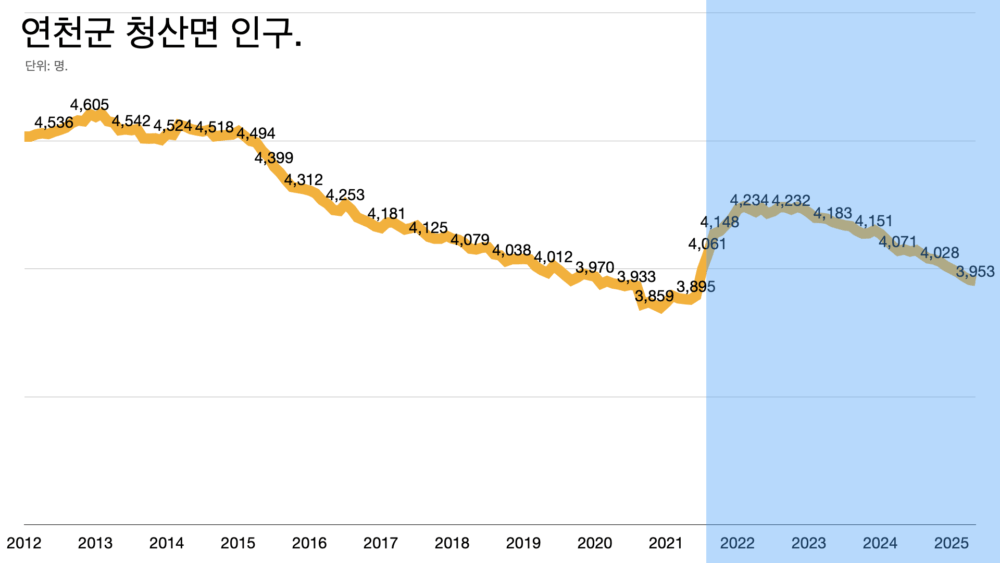 - 이재명(대통령)이 경기도지사 시절 시범 사업을 시작했던 경기 연천 청산면은 반짝 인구가 늘었다가 다시 줄었다.