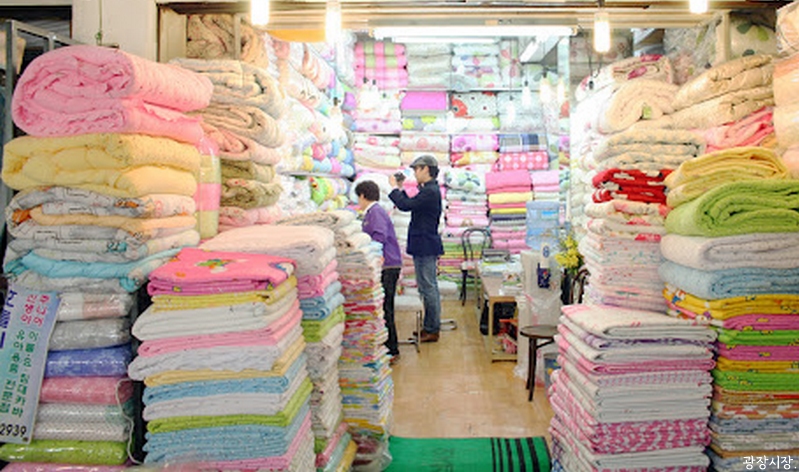 - 가격이 싸고 품질이 좋다는 소문이 퍼졌다. 대만에서는 수십만 원 하는 이불을 광장시장에서는 5만 원에 살 수 있다.