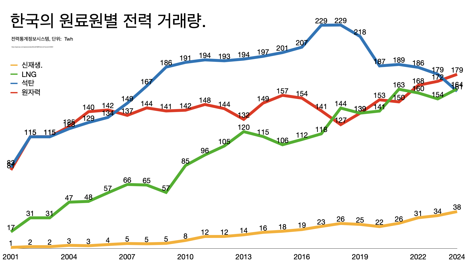 - 석탄과 LNG가 기저 전원 역할을 하던 때가 있었지만 90% 이상 수입인 데다 가격 변동성이 크고 무엇보다도 탄소 감축 로드맵에도 맞지 않다.