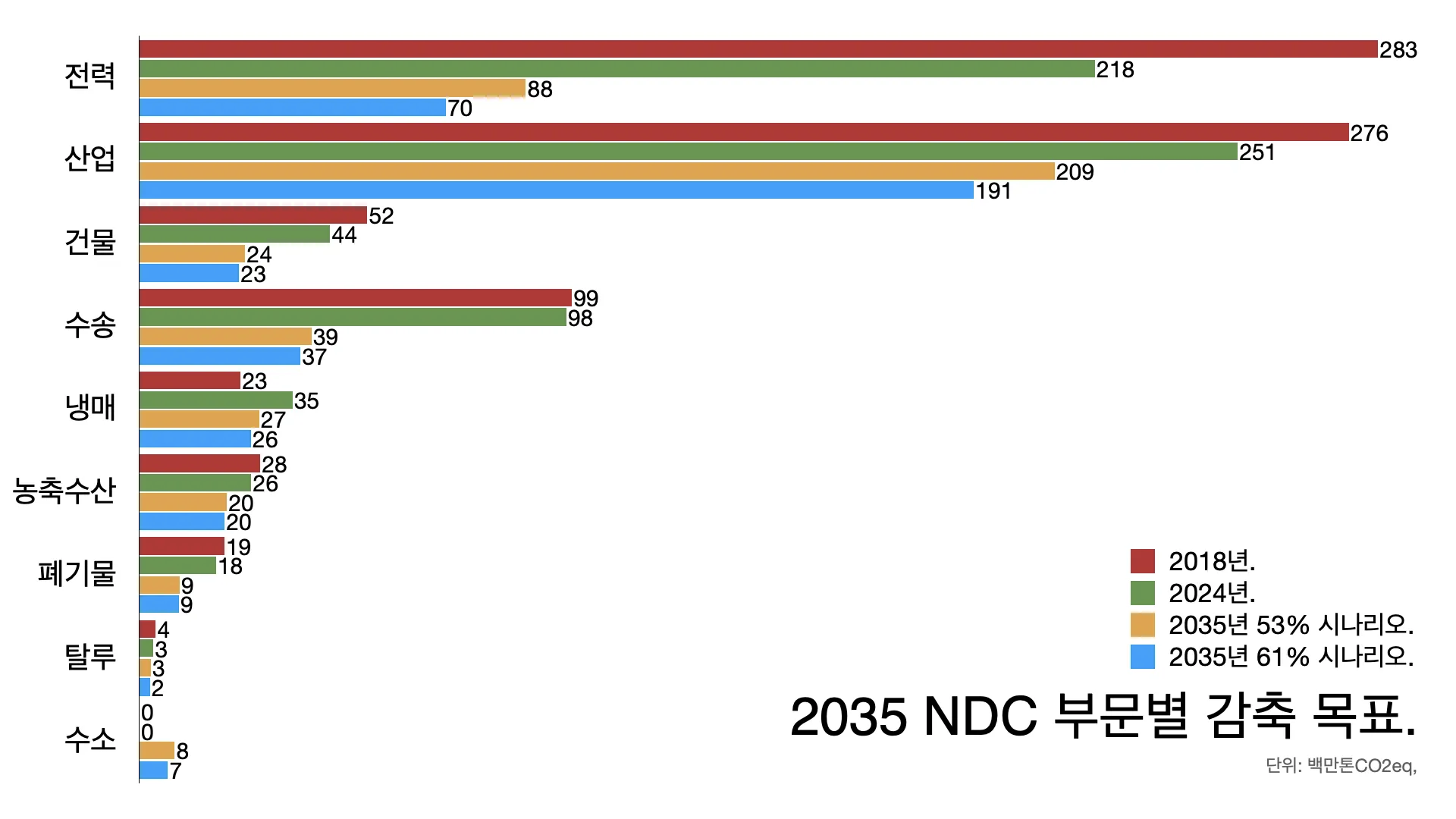 - 2035년 국가 감축 목표에서 가장 큰 부분이 전력이고 LNG와 석탄 발전을 줄이는 게 가장 시급한 과제다.