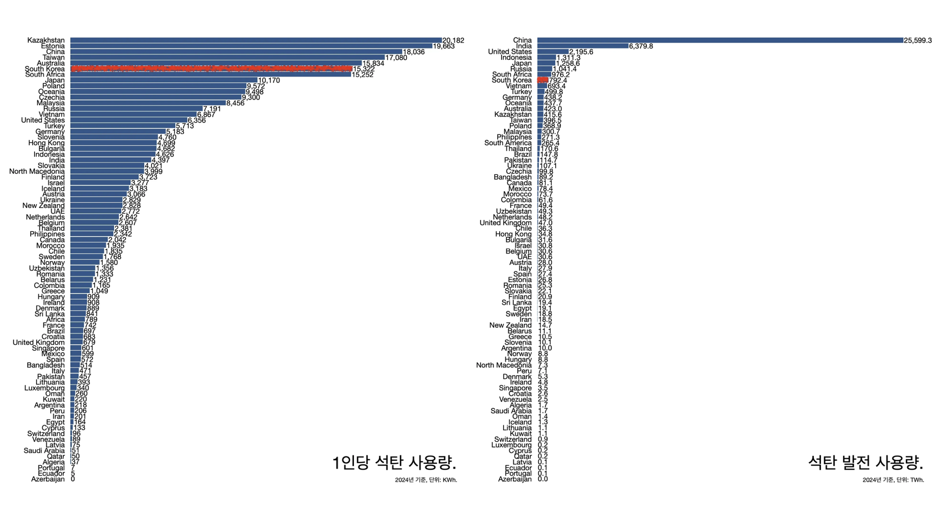 - 중국과 인도, 미국, 인도네시아, 일본 등에 이어 석탄 발전을 많이 쓰는 나라 8위다.