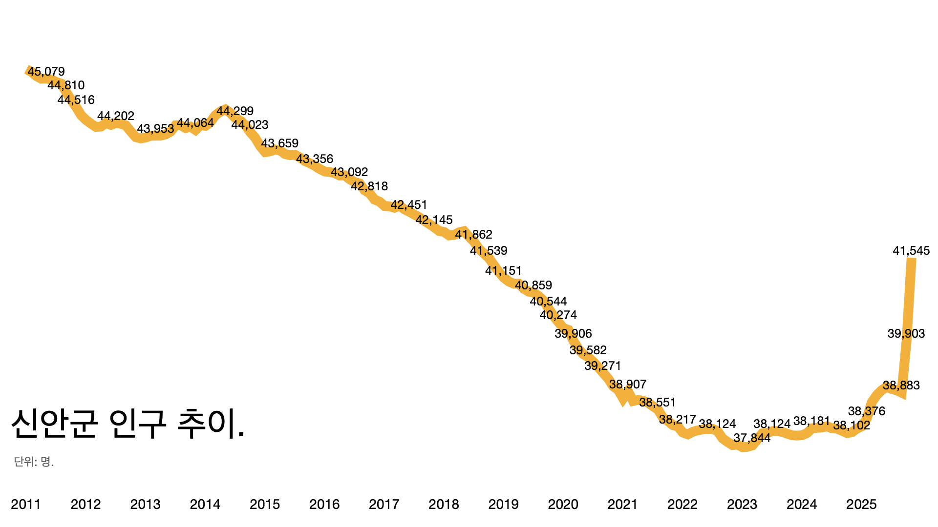 신안군 인구 2600명 늘 때 목포는 1700명 줄었다.
