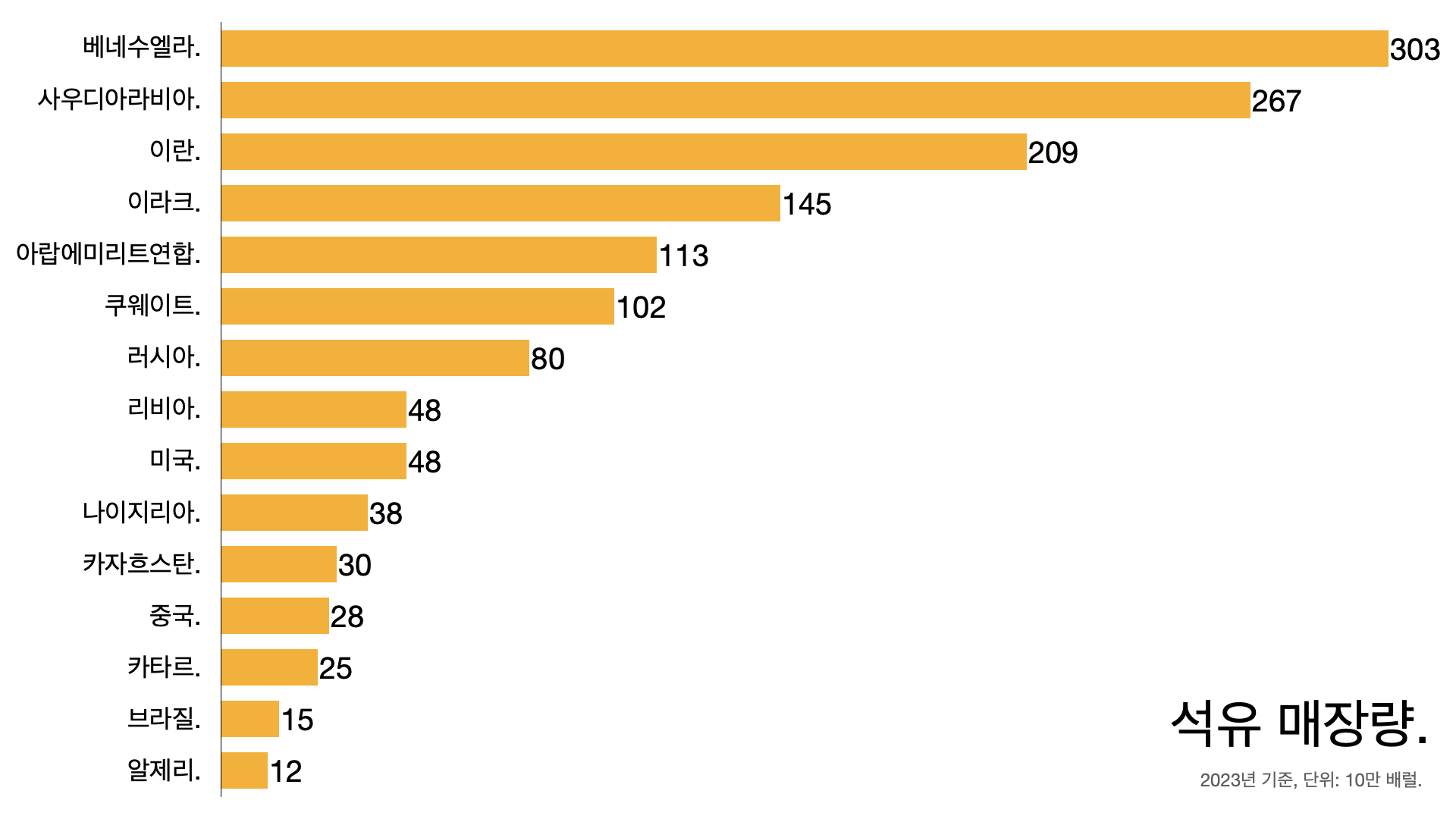 - 베네수엘라는 석유 매장량 1위 나라다. 마두로는 “미국의 목표는 석유”라고 주장해 왔다. 체포 직전 스페인 언론과 인터뷰에서 “미국이 석유를 원한다면 투자를 환영한다”고 말하기도 했다.