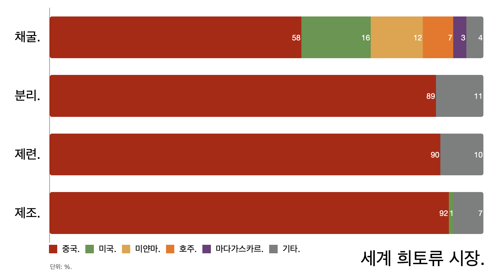 - 일본은 희토류의 60~70%를 중국에 의존한다. 한-미-일 갈라치기 전략이라는 관측도 나온다.