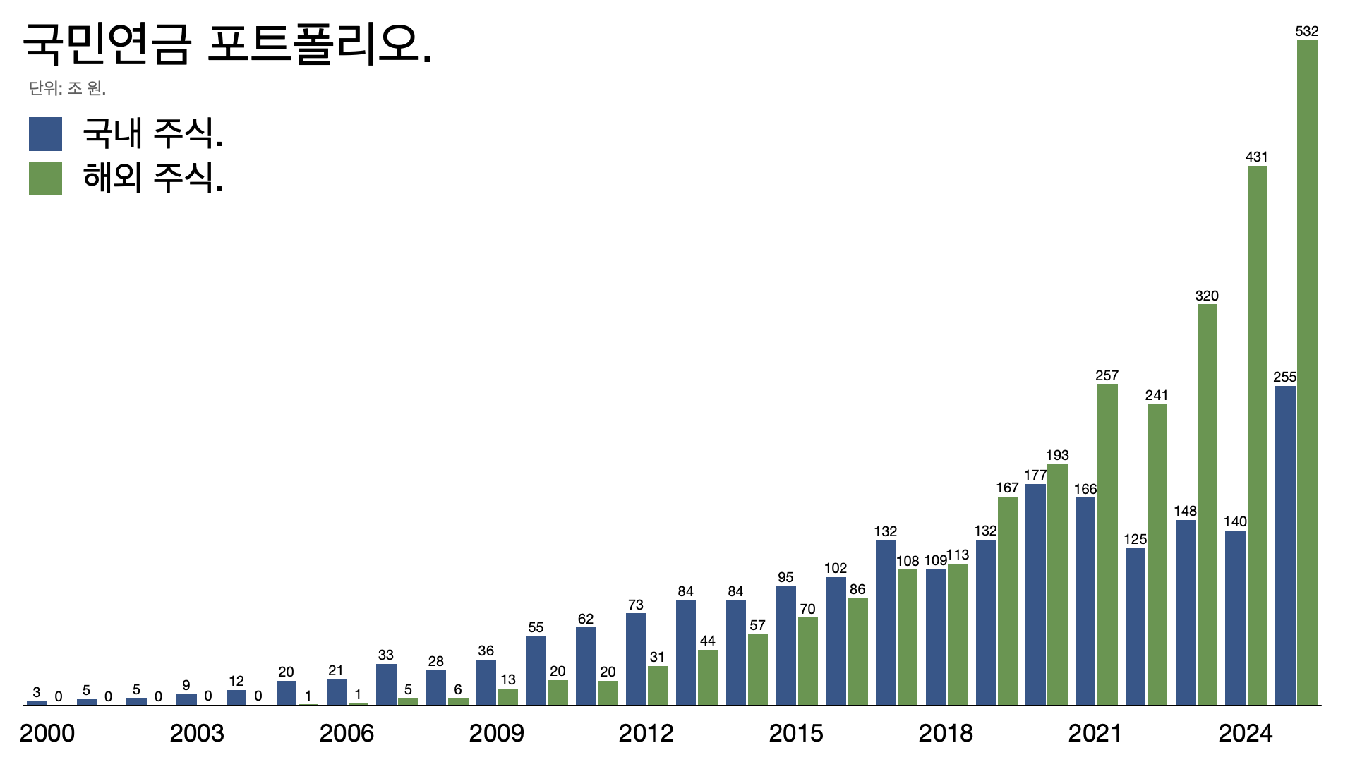 - 삼성전자와 SK하이닉스 효과다. 2024년 말 129조 원에서 지난해 말 247조 원으로 늘었다.