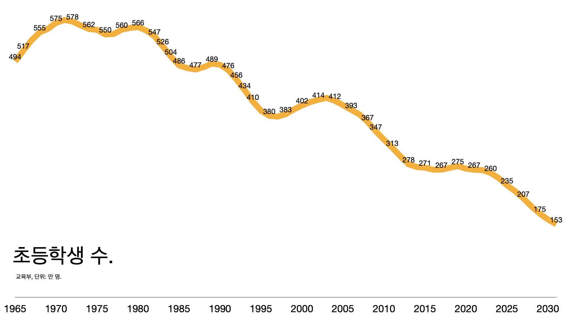 - 초중고 학생수는 484만 명, 2031년이면 381만 명으로 줄어들 거라는 전망이다.