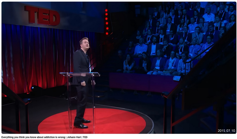 베트남전 당시 미국 참전 군인의 20%가 헤로인을 사용했다. 전쟁이 끝나면 수십만 명의 마약 중독자가 거리를 헤맬 것이라 걱정했다. 하지만 95%는 별문제 없이 헤로인을 끊었다. 유명한 쥐 실험도 있다. 우리에 물과 마약이 포함된 약물을 놓으면 쥐는 약물을 마신다. 그런데 그 우리에 쥐가 재미있어야 할 다른 장난감, 음식, 짝짓기 상대를 넣어주면 그냥 물을 택한다. 고립된 쥐는 거의 언제나 중독되지만, 즐겁게 생활하는 쥐는 약물에 의존하지 않는다. 사람들이 마약을 찾는 이유는 외로움, 실직 등 상황에 짓눌린 탓이라는 가설을 뒷받침한다. 흡연 중독성도 만만치 않은데, 10만 명 중 650명이 흡연 때문에 사망하지만, 코카인으로 사망하는 사람은 10만 명 중의 4명이라고 저자는 강조한다.