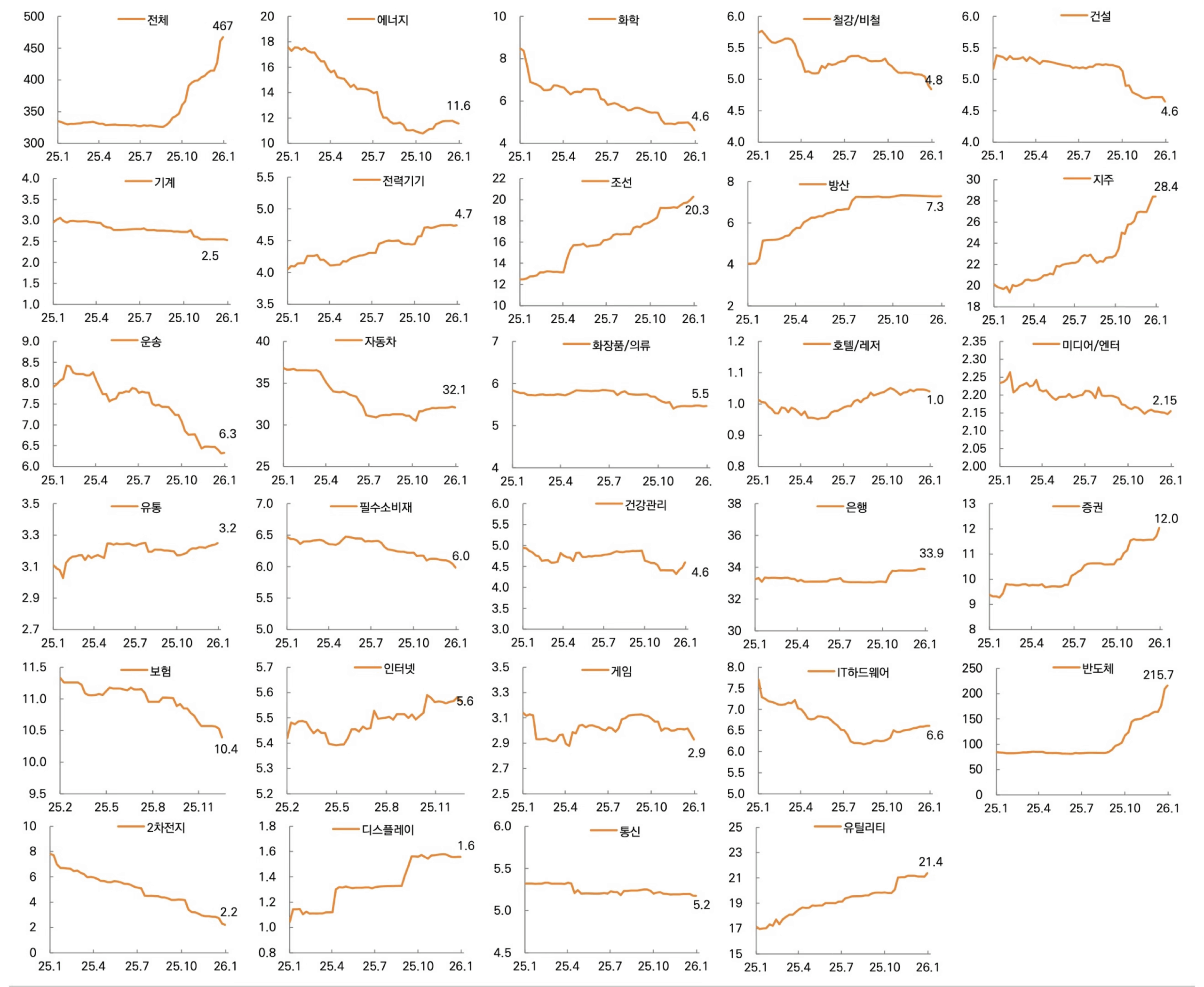 - 외국인 투자자들은 아직 여력이 있다. 지난해 11월 14조 원어치를 순매도한 뒤 6조 원어치를 순매수한 상황이다. 반도체와 자동차를 팔고 조선과 유틸리티, 철강, 건설, 증권 업종을 사들이고 있다.