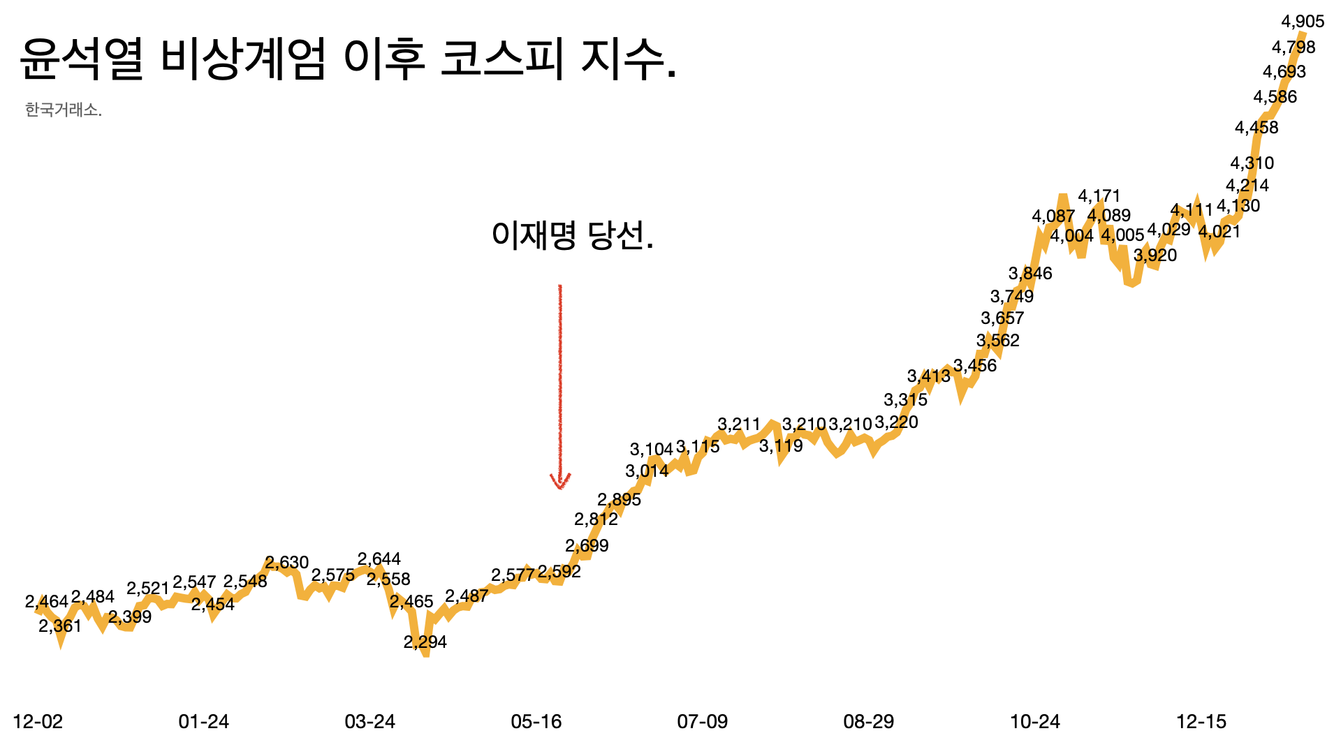 - 코스피 지수가 4904.66을 찍었다.