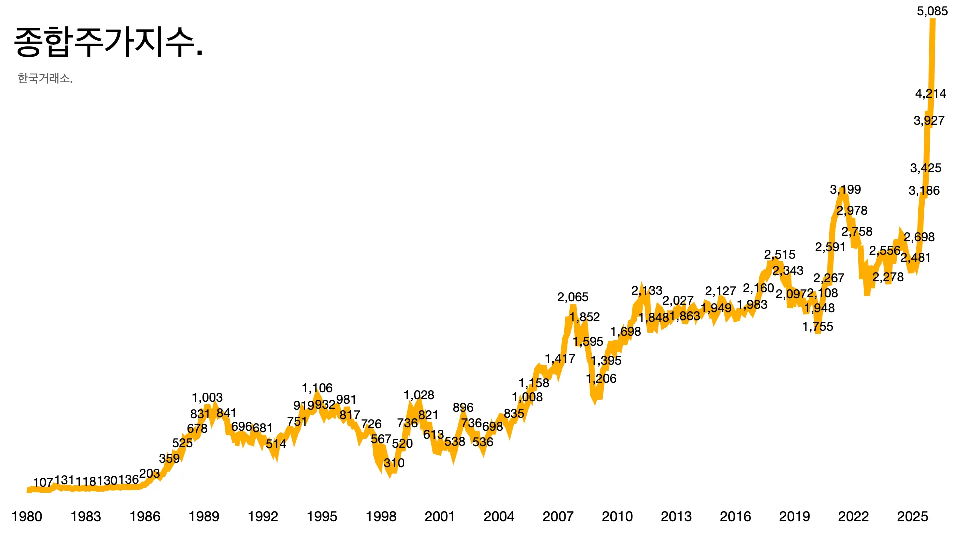 - 종가 기준으로 5000을 넘겼다. 2.7% 올라 5084.95를 찍었다.