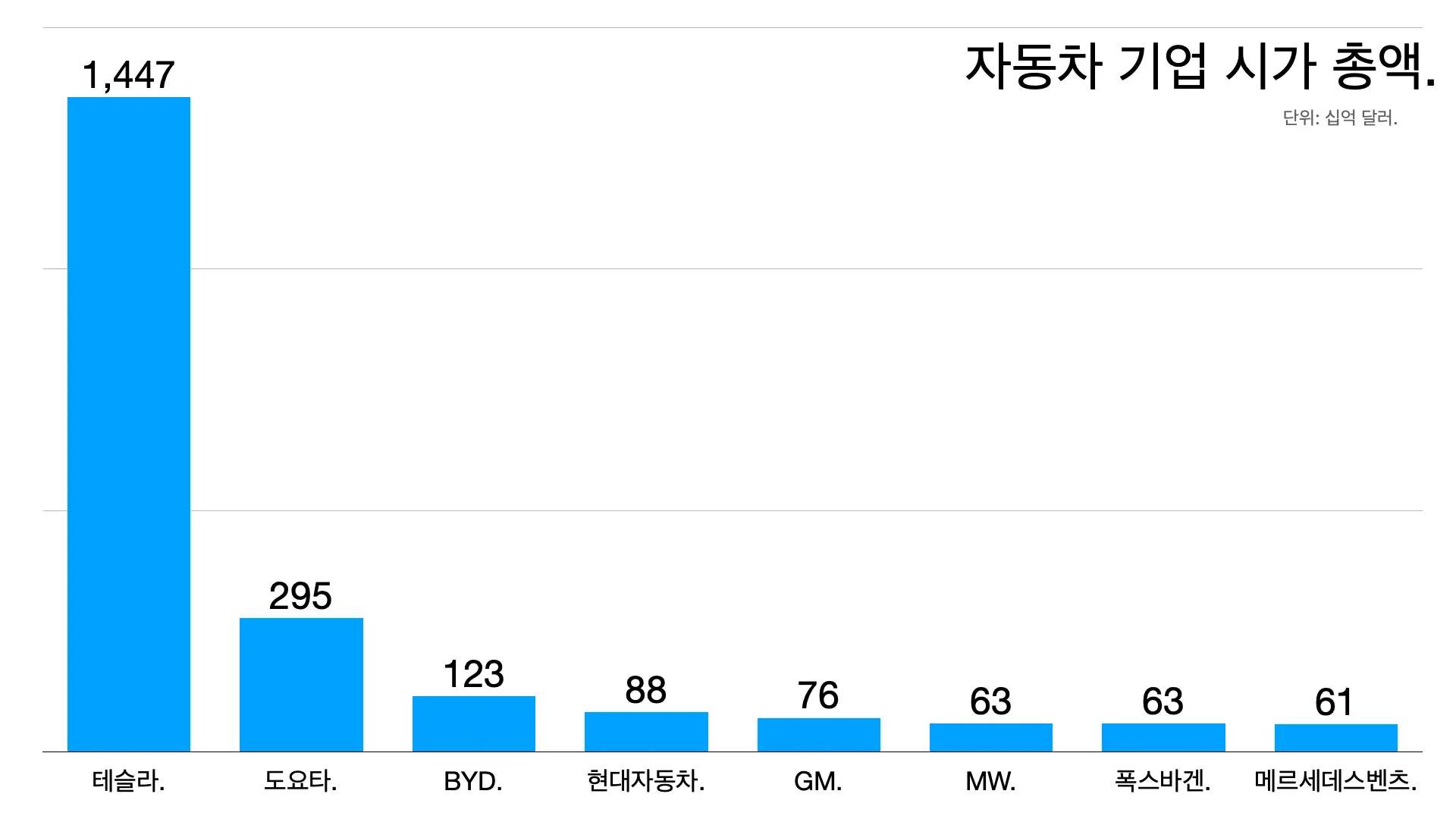 - 테슬라와 BYD 등 전기자동차 기업을 더하면 시가총액 기준으로 4위다.