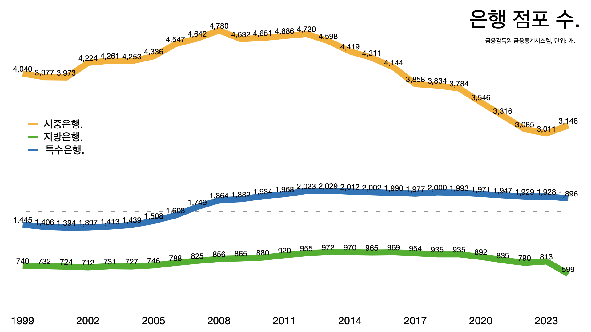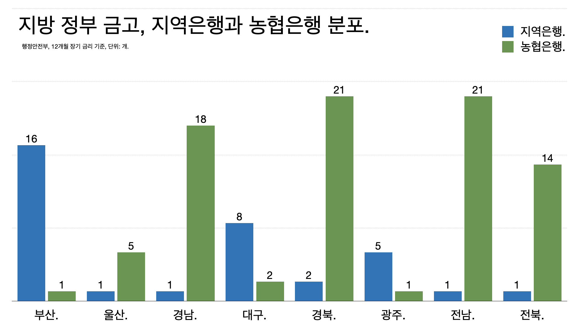 - 농협은행이 낮은 이자율로 지역 금고를 싹쓸이하는 건 금융 접근성의 문제로 해석할 수도 있다. 점포가 계속 사라지면서 농협 의존도가 높아진다.