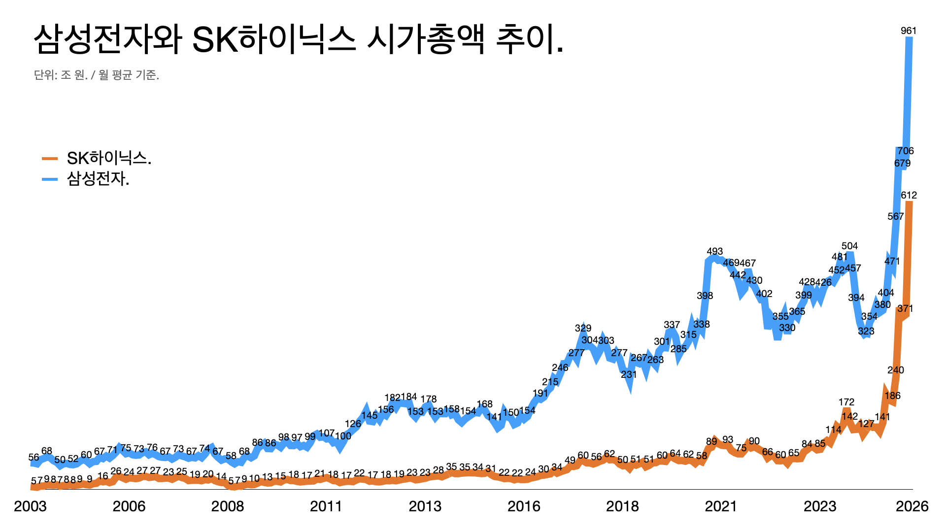 - SK하이닉스는 HBM(고대역폭 메모리) 시장 점유율이 57%다. 삼성전자는 22%다.