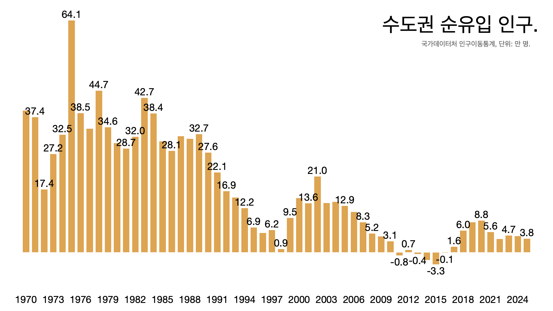 - 지난해 인구 이동 통계 결과다. 지난해 수도권 순유입이 3.8만 명이다.