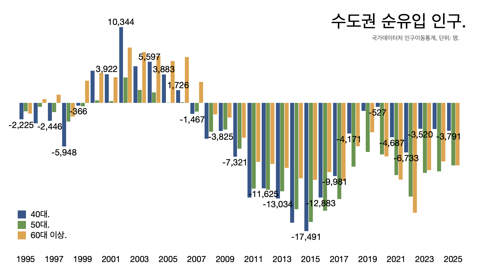 30대 이하는 수도권으로, 40대 이상은 탈출 가속화.