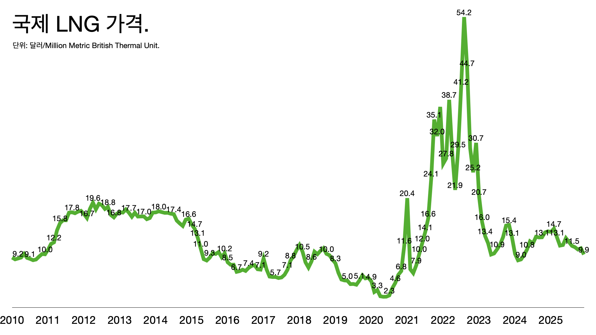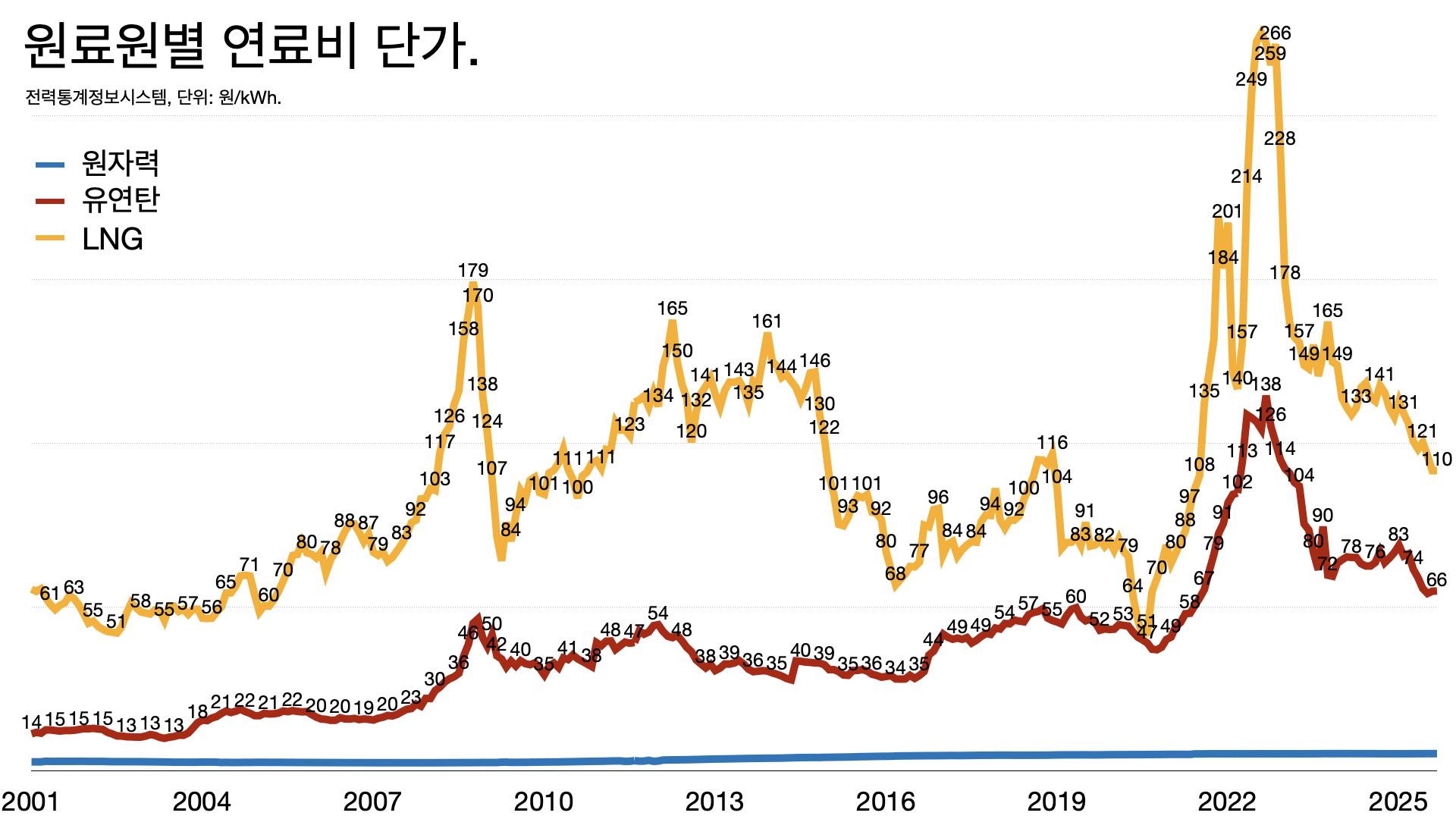 - 수입 에너지 가격, 특히 LNG 가격 변동에 취약한 구조입니다.