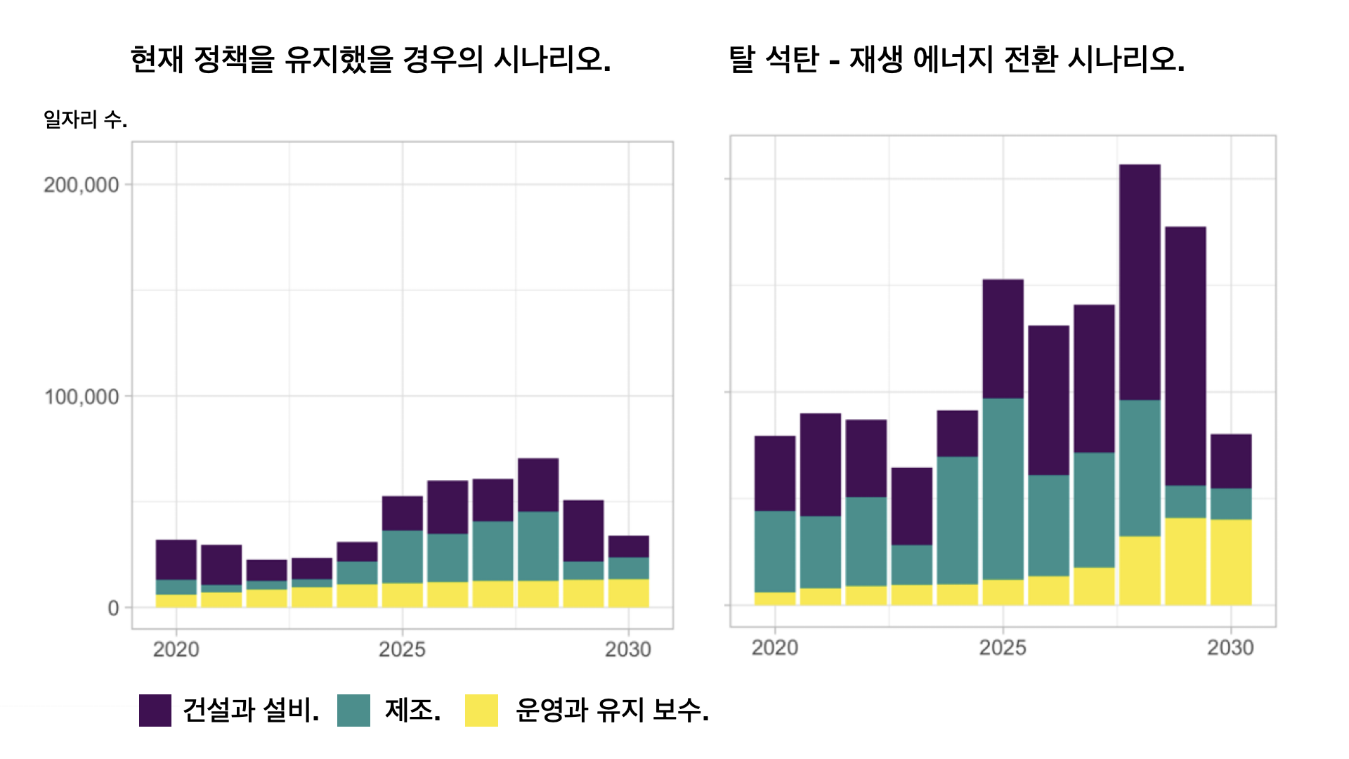 - 석탄 발전을 재생에너지로 바꾸면 일자리도 늘어납니다. 2030년 이전에 석탄을 완전히 퇴출하고 재생에너지와 저장 기술
